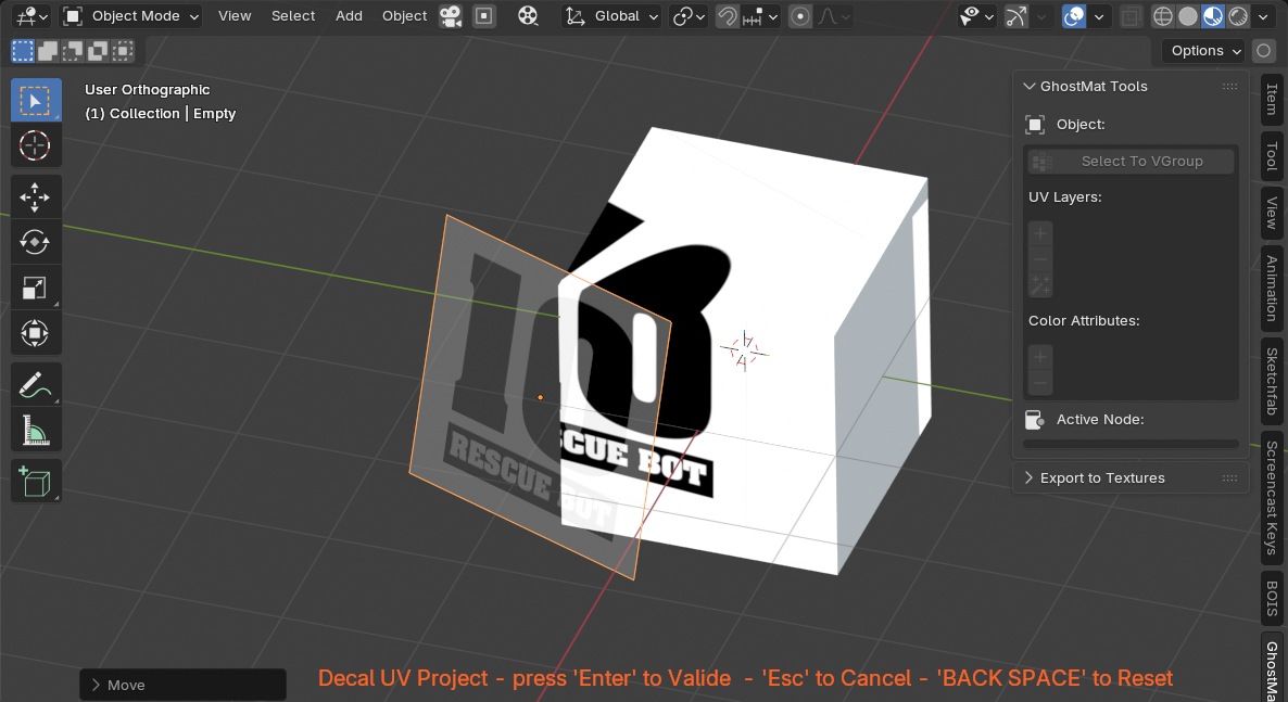 The Decal Project Tool is in the Active Node Properties in GMAT panel of the 3Dview.