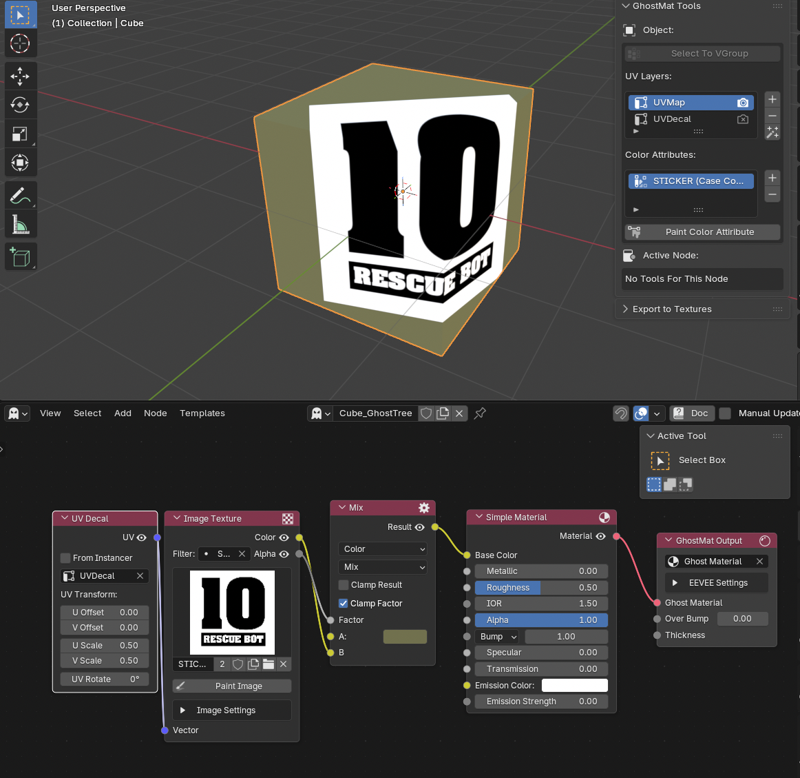 result: a UV Decal Node is created and connected to the Image Node